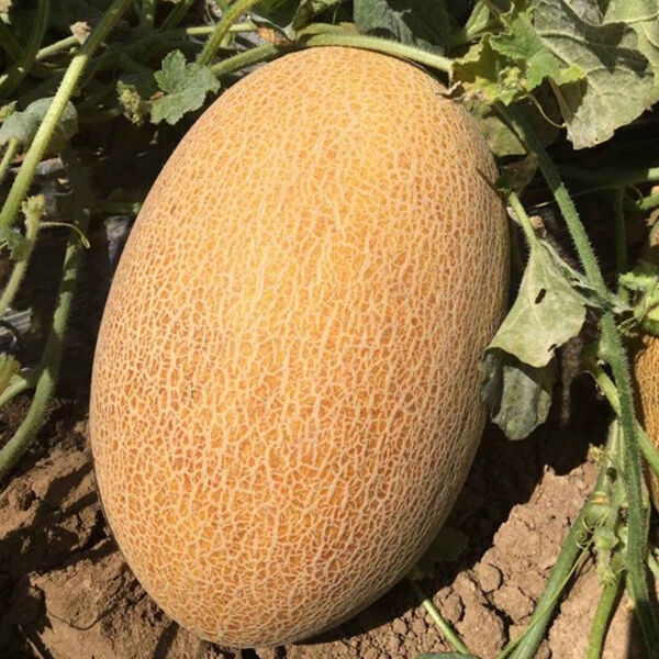 Гибрид отличается дружным формированием и созреванием плодов, а также формированием качественной сетки на поверхности на протяжении всего сезона выращивания. Плоды овальной формы, массой 1,8-3 кг, имеют привлекательную желто-оранжевую окраску с красивой сеткой.