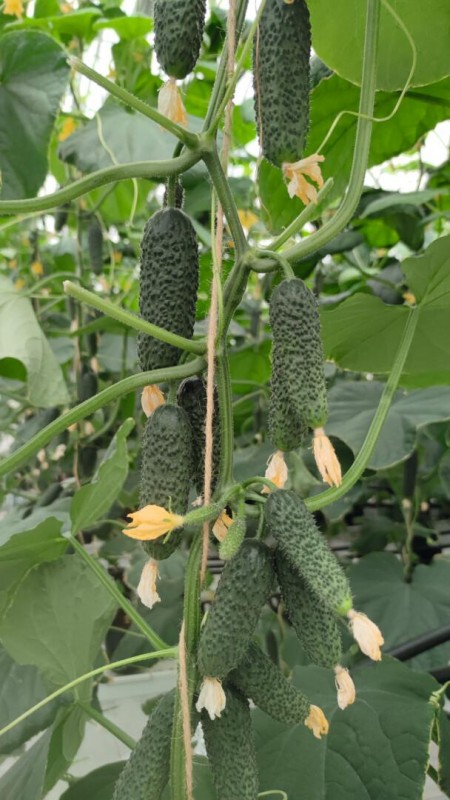 Растение формирует по 2-4 темно-зеленых, белошипых плода в каждом узле на протяжении всей вегетации, не сбрасывая завязь даже в стрессовых условиях. Зеленцы длиной 9-14 см, выровненные, с отличной транспортабельностью. Гибрид предназначен специально для первого и второго оборота в стеклянных и плёночных теплицах, а также для светокультуры и выращивания на гидропонике. Обладает высокой устойчивостью к комплексу болезней.