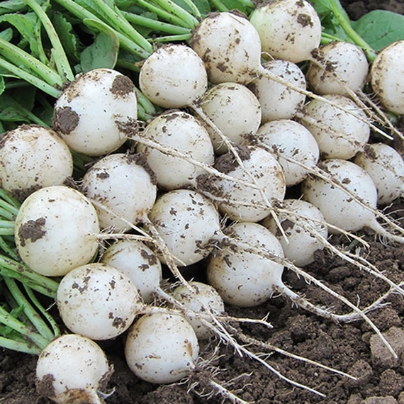 Корнеплод: 20-25 г, 3-4 см, идеально круглый, белый, белоснежная мякоть