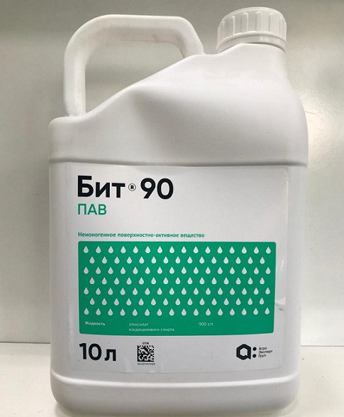БИТ 90 — высококонцентрированный неионогенный поверхностно-активный адъювант (ПАВ), специально разработанный для повышения эффективности гербицидов. Улучшает смачиваемость, прилипание и проникновение действующих веществ в сорные растения, особенно трудноистребимые виды с восковым налётом или опушением. Критически важен для работы в сложных погодных условиях.
