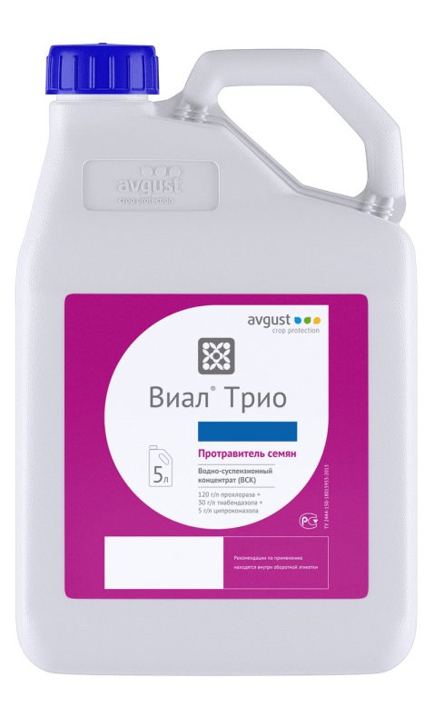 Виал Трио — это инновационный трехкомпонентный фунгицидный протравитель семян от компании АО Фирма «Август», разработанный для обеспечения усиленной и длительной защиты зерновых культур от широкого комплекса патогенов. Препарат сочетает три действующих вещества из разных химических классов, что обеспечивает высокую эффективность против семенной, почвенной и ранней аэрогенной инфекции. Идеально подходит для современных технологий с минимальной и нулевой обработкой почвы.